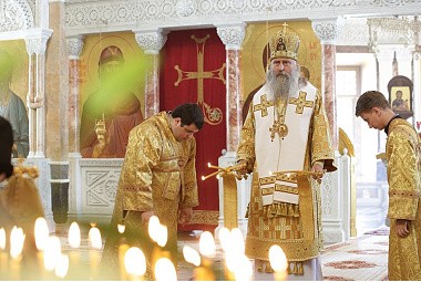 В этот день митрополиту Екатеринбургскому и Верхотурскому Кириллу и Архиепископу Сергиево-Посадскому Феогносту сослужил наместник монастыря святых Царственных страстотерпцев архимандрит Пимен и духовенство Екатеринбургской епархии.