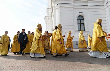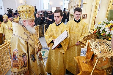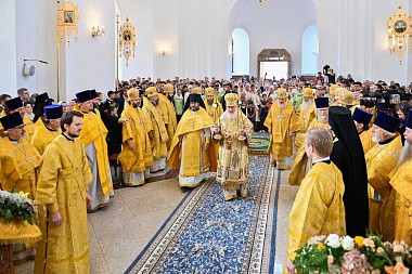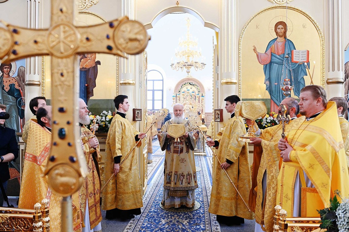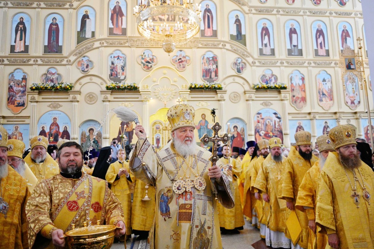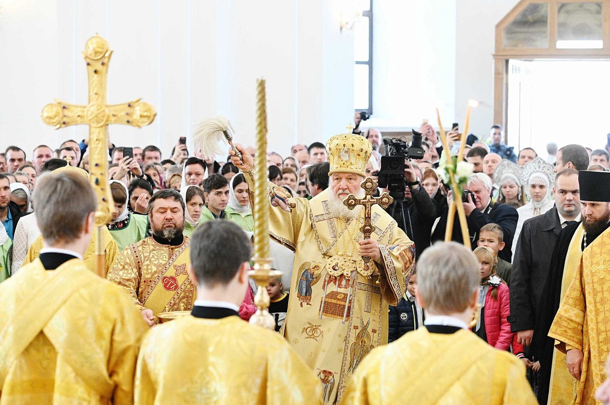 Предстоятель Русской Церкви совершил чин великого освящения Успенского собора и Божественную литургию в новоосвященном храме.