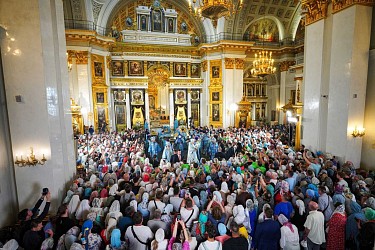 Богослужение транслировалось в прямом эфире телеканалов «Союз», «Спас», ТРК «Новый Век», а также на официальном портале Русской Православной Церкви Патриархия.ru. Трансляция была выведена на большой экран, установленный перед Казанским собором.