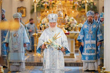 По окончании Литургии Святейший Патриарх Кирилл совершил славление празднику