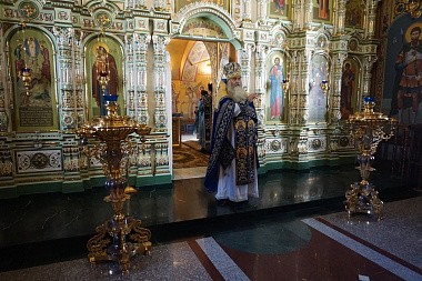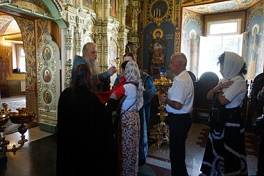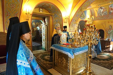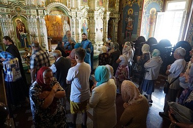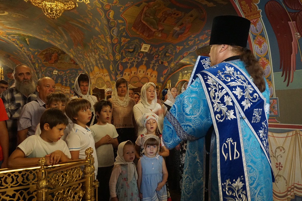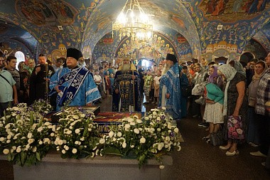 Под колокольный звон многочисленные прихожане и паломники, окропляемые святой водой, обошли храмы обители. При возвращении в Успенскую церковь вместе с народом было пропето песнопение «Царице Моя Преблагая…» По окончании крестного хода братия монастыря во главе с игуменом проследовали в братскую трапезную, где был совершен «Чин о Панагии».