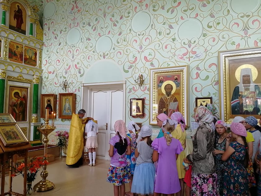20 юных паломниц приехали в обитель, где их ожидала насыщенная программа. Утреннее и вечернее детское молитвенное правило, посещение богослужений, исповедь и Причастие в праздник Крещения Руси, чтение житий святых, ежевечерний просмотр православного мульткалендаря.