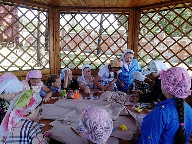 Участие в трудовых послушаниях тоже было в радость, ведь это – посильная помощь сестрам по уходу за цветниками, в трапезной, на огороде, в сборе лекарственных растений. Работа в творческих мастерских позволила девочкам научиться различным видам рукоделия и привезти домой изготовленные своими руками изделия: мягкую игрушку (в этом году – куклу); необычные брелоки и банты для волос из фетра, лент и пряжи; неповторимые кусочки ароматного лечебного мыла; поделки из бумаги; косынки, расписанные своими руками в технике батик. Немало времени было посвящено рисованию, пению, выжиганию по дереву, флористике. Состоялись кулинарные мастер-классы, в том числе по росписи имбирных пряников.