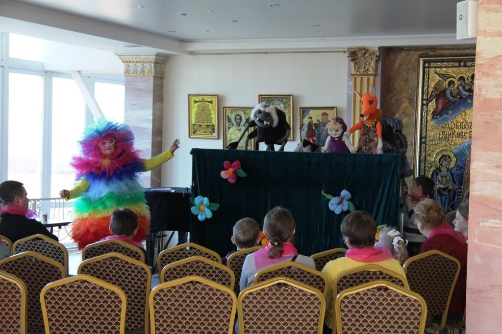 Конечно же, знакомство со сказочными персонажами не только развлекло детей, позволило им интересно провести время, но и послужило основой для последующей беседы на духовно-нравственные темы, после которой педагоги и психологи провели небольшой тренинг на развитие коммуникативных и познавательных навыков, помогли родителям лучше узнать своих детей. После психологических упражнений и беседы участники программы «Добрый день» посмотрели развивающие мультфильмы и мини-фильмы в большом конференц-зале духовно-просветительского центра «София».