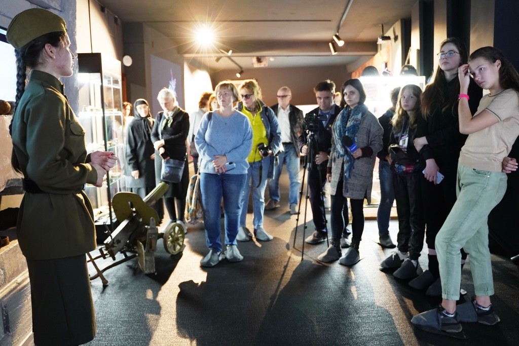 Экскурсоводы интерактивного музея из Малоярославца рассказали гостям кратко о значении подвига защитников Ильинских рубежей и истории создания памятника на кургане у реки Выпрейка и военно-исторического музея – филиала Калужского объединенного музея-заповедника.