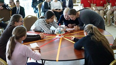 Встреча школьников в духовно-просветительском центре «София» под звуки песен военных лет началась с экскурсии в интерактивный музей «Малоярославец – город двух побед». Перед началом экскурсии ведущая клуба интеллектуальных и творческих игр духовно-просветительского центра «София» посоветовала ребятам внимательнее слушать экскурсию, так как часть вопросов турнира основаны на том, что должны рассказать экскурсоводы о защите Ильинских рубежей. Многие из участников турнира именно благодаря этому предупреждению были готовы дать ответ на некоторые, особенно сложные вопросы.
