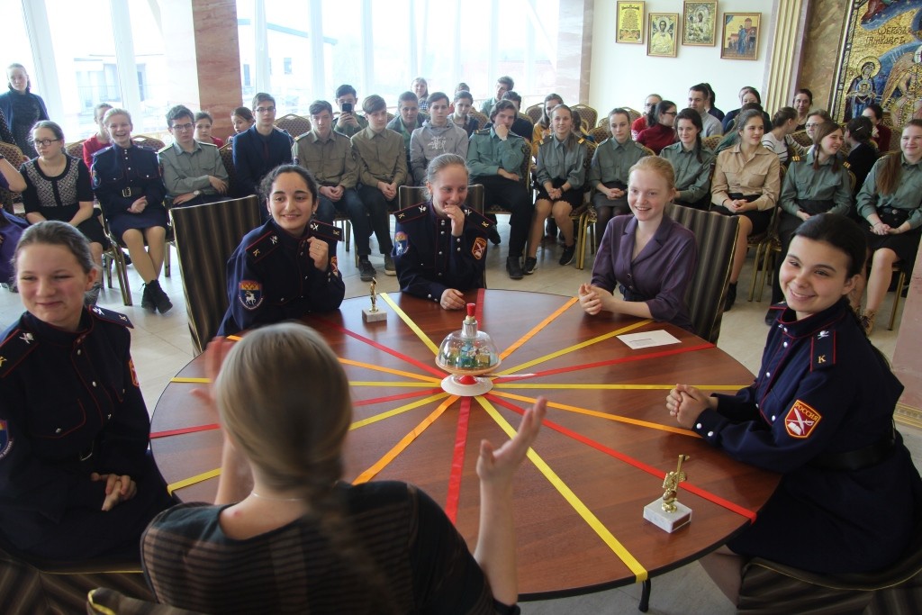 В воскресенье, 31 марта, после Божественной литургии и обеда в Духовно-просветительском центре «София» прошел турнир «Что? Где? Когда?» между малоярославецкими и брянскими командами. В игре приняли участие 6 команд: детского православного пансиона «Отрада», студентов Центра православных медиа, казаков и сестер милосердия военно-патриотического клуба при монастыре, «Форпоста».
