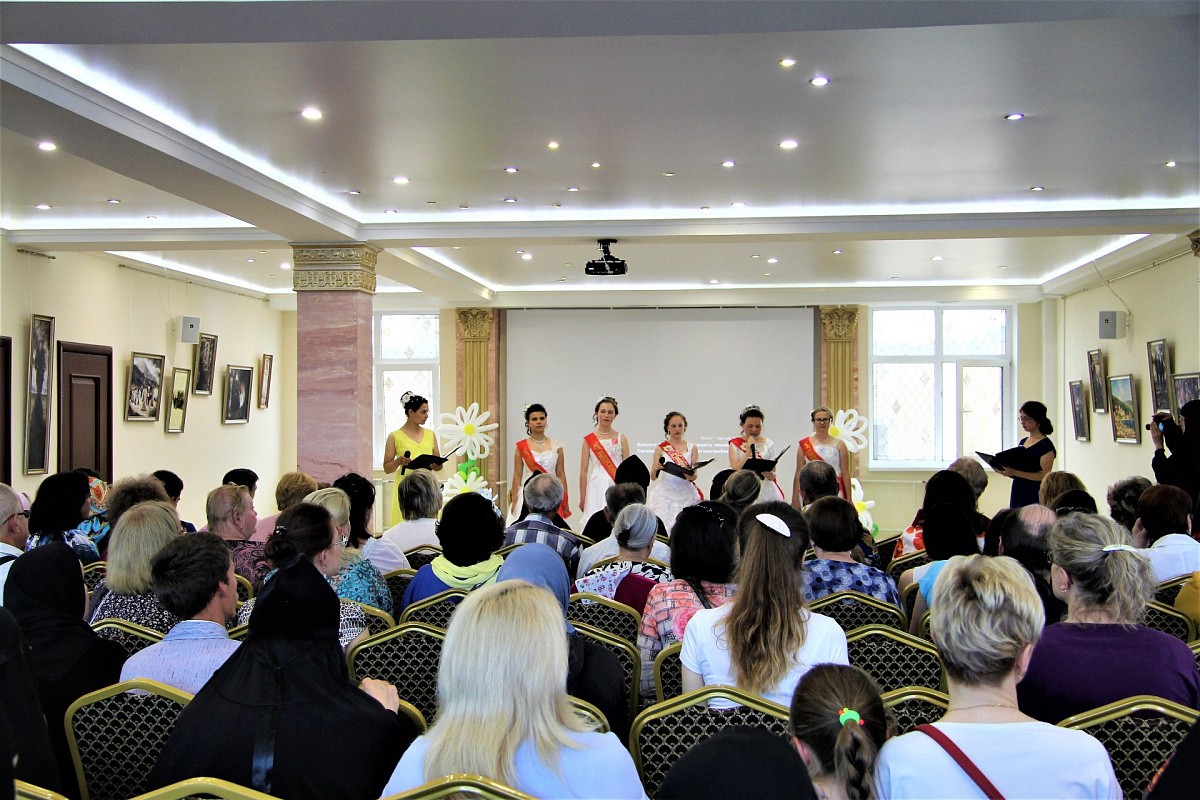 По завершении краткой торжественной части началось представление, посвященное Дню семьи, любви и верности, открывшееся русским народным танцем-хороводом в исполнении воспитанниц детского православного пансиона «Отрада».