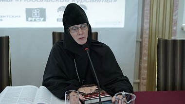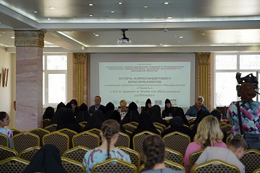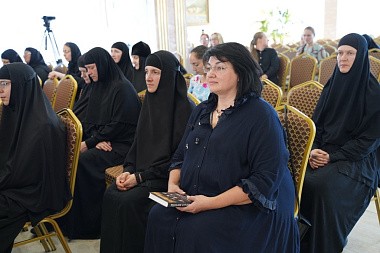 После приветственного слова участникам конференции вторая ее гостья зачитала стихи, посвященные приснопоминаемому духовнику Свято-Никольского Черноостровского женского монастыря схиархимандриту Михаилу (Балаеву), который в годы Великой Отечественной Войны прошел как участник боев – танкист – от вяземской земли до самого Берлина.