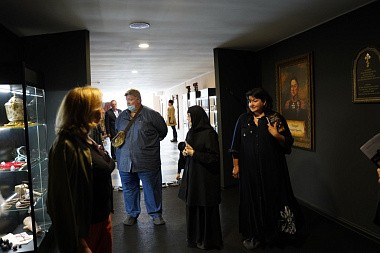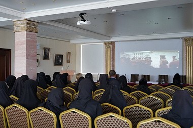 Ирина Владимировна рассказала о планах по выходу на экраны широкоформатного фильма «Подольские курсанты», премьера которого была перенесена в связи с пандемией новой короновирусной инфекции как минимум на год, и показала двухминутный трейлер фильма. Ирина Бабакова также поделилась своими впечатлениями от общения с воспитанницами пансиона «Отрада» и студентами Центра православных медиа в Православной молодежном центре «Златоуст» и в завершение выразила надежду, что сестры Свято-Никольского Черноостровского женского монастыря, студенты Центра православных медиа и матушки игумении выскажут отзывы о тексте готовящейся к изданию книги и помогут в создании иллюстраций для нее.