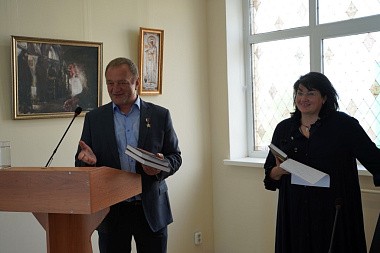 В завершение своего доклада Александр Васильевич преподнес игумении Нектарии и игумении Макарии от Федеральной национально-культурной автономии белорусов России по экземпляру изданной к 75-летию Победы книги «Республика-партизанка» об истории партизанского движения в Белоруссии в годы Великой Отечественной войны и еще несколько экземпляров этой же книги – в дар Свято-Никольскому Черноостровскому женскому монастырю.