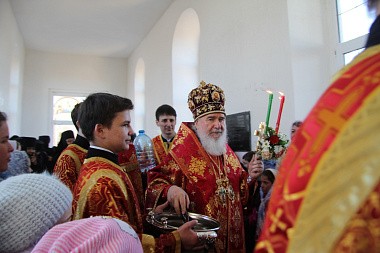 В Большой трапезной сестер, гостей и прихожан монастыря, помимо праздничного обеда, ждало выступление-поздравление младших воспитанниц Православного детского пансиона «Отрада», завершившееся раздачей сладких пасхальных сувениров.