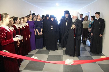 Высокопреосвященнейший митрополит Климент, выступая с духовным словом перед торжественным перерезанием ленточки у входа в музей, поблагодарил игумению Николаю и сестер монастыря за труды по созданию музея и духовно-просветительского центра «София» в целом.