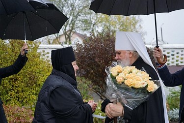 В завершение глава администрации Малоярославца М.А. Крылов поблагодарил настоятельницу игумению Николаю (Ильину) за многолетнее соработничество с местными властями на благо жителей и преподнес ей букет цветов.