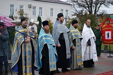 По окончании Литургии начался объединенный исторический крестный ход приходов города и военно-исторических клубов от монастыря к Монументу Славы и памятнику полковому священнику отцу Василию Васильковскому, где были отслужены лития памяти павших в Малоярославецком сражении воинов, благодарственный молебен за победу, и прошла торжественная церемония с возложением цветов.