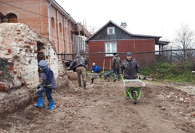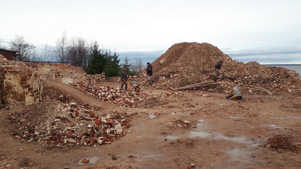 В обители полным ходом идут работы по разбору завалов на месте взорванного в годы советской власти Преображенского собора – уникального первого каменного храма на Вологодской земле, построенного во второй половине XV века.