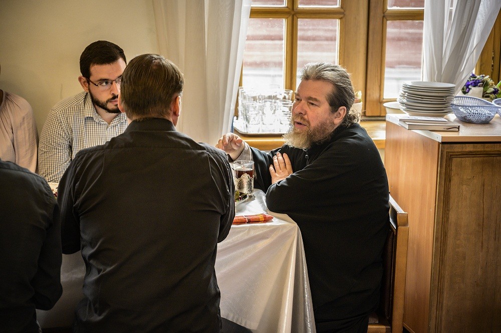 Первый день начался с посещения ансамбля Успенского Псково-Печерского монастыря. Группу студентов из пяти московских вузов принял в древней русской обители митрополит Псковский и Порховский Тихон.