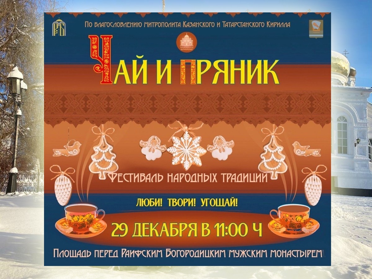 Раифский Богородицкий монастырь приглашает всех желающих в преддверии Нового года посетить фестиваль народных традиций «Чай и пряник», который состоится 29 декабря на площади перед монастырем.