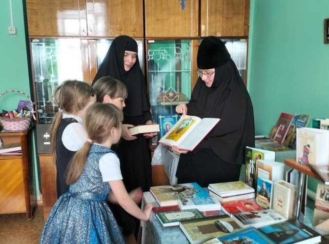 Сестры показали ребятам доступные для них книги духовного содержания, рассказали о том, как и когда на Руси появились первые книги, как возникло книгопечатание.