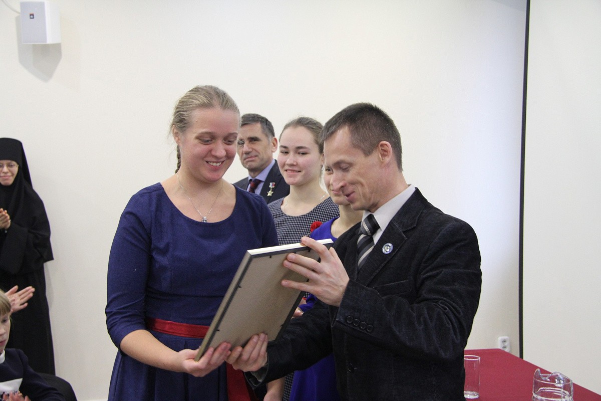 Далее последовали доклады и презентации школьников. Это было и творческое эссе о красоте Неба восьмиклассницы Кондратенко Арсении, и доклад о влиянии Луны на успеваемость школьников, представленный ученицей 11 класса Потяновой Марией, и модель ракеты К.Э. Циолковского, подготовленная учеником 4-го класса Олегом Панкратовым, и экскурс в историю астрономии на Руси ученицы 9 класса Синевой Инны, и иллюстрированная рисунками биография земляка калужцев Константина Эдуардовича Циолковского, 160-летие в дня рождения которого исполнилось в этом году, рассказывающая о том, что такое сила духа ученицы 8-го класса малоярославецкой гимназии Ярославцы Примхи. Сила духа и сила веры — о важности этих двух качеств говорилось и в докладах школьников, и в речах героев-космонавтов. Завершала школьную конференцию презентация ученицы 10 класса Православной гимназии Васяевой Ксении, рассказывавшей об истории общения и встреч учеников Православной гимназии с космонавтами России, начиная с Владимира Джанибекова и кончая героями дня Валерием Корзуном, Юрием Маленченко и Сергеем Рыжиковым. Что интересно, презентация была оперативно дополнена фотографиями и с нынешнего мероприятия, добавляя в копилку уникального опыта детей приюта «Отрада» и города Малоярославца еще примеры мужества, самоотверженности и веры.