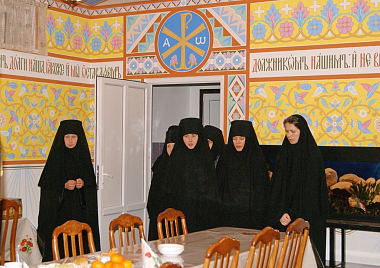 Встреча с гостем обители продолжилась в сестринской трапезной, где были предложены постные блюда, в том числе из шампиньонов, выращенных на монастырском подворье. Во время трапезы батюшка беседовал с матушкой Неониллой о монастырской жизни, о духовности, давал мудрые советы.