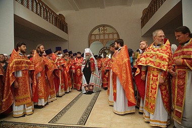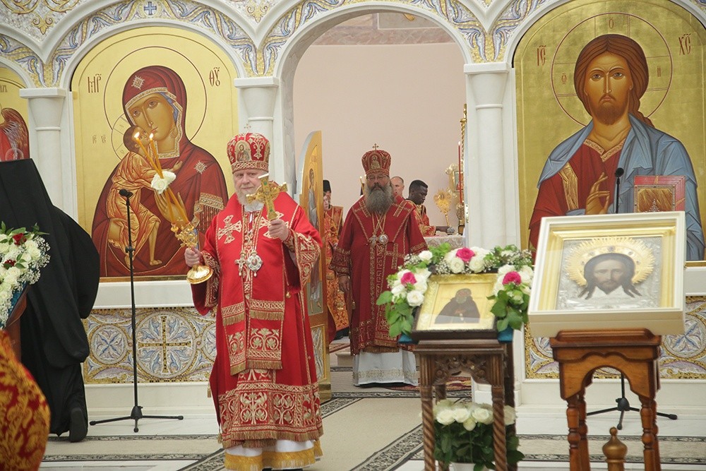 Его Высокопреосвященству сослужили митрополит Рязанский и Михайловский Марк, архиепископ Бакинский и Азербайджанский Александр, епископ Сиэтлийский Феодосий, епископ Канберрский Георгий, епископ Исилькульский и Русско-Полянский Феодосий, епископ Мариинский и Юргинский Иннокентий, епископ Магнитогорский и Верхнеуральский Иннокентий, епископ Ахтубинский и Енотаевский Антоний, епископ Каменский и Алапаевский Мефодий, епископ Щигровский и Мантуровский Паисий, епископ Нижнетагильский и Невьянский Евгений, епископ Серовский и Краснотурьинский Алексий, секретарь епархиального управления Екатеринбургской епархии иеромонах Кирилл (Корытко), настоятель обители игумен Моисей (Пилатс), а также духовенство Екатеринбургской митрополии.