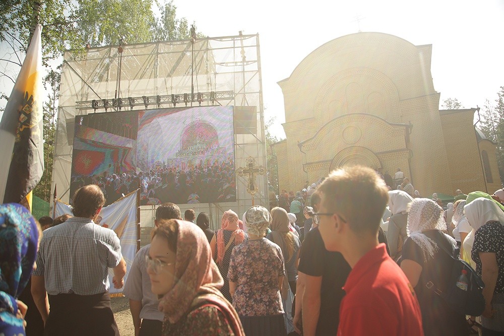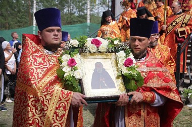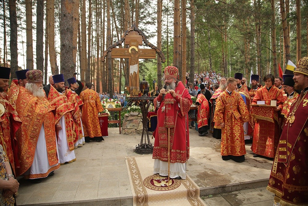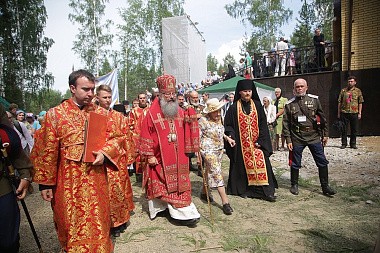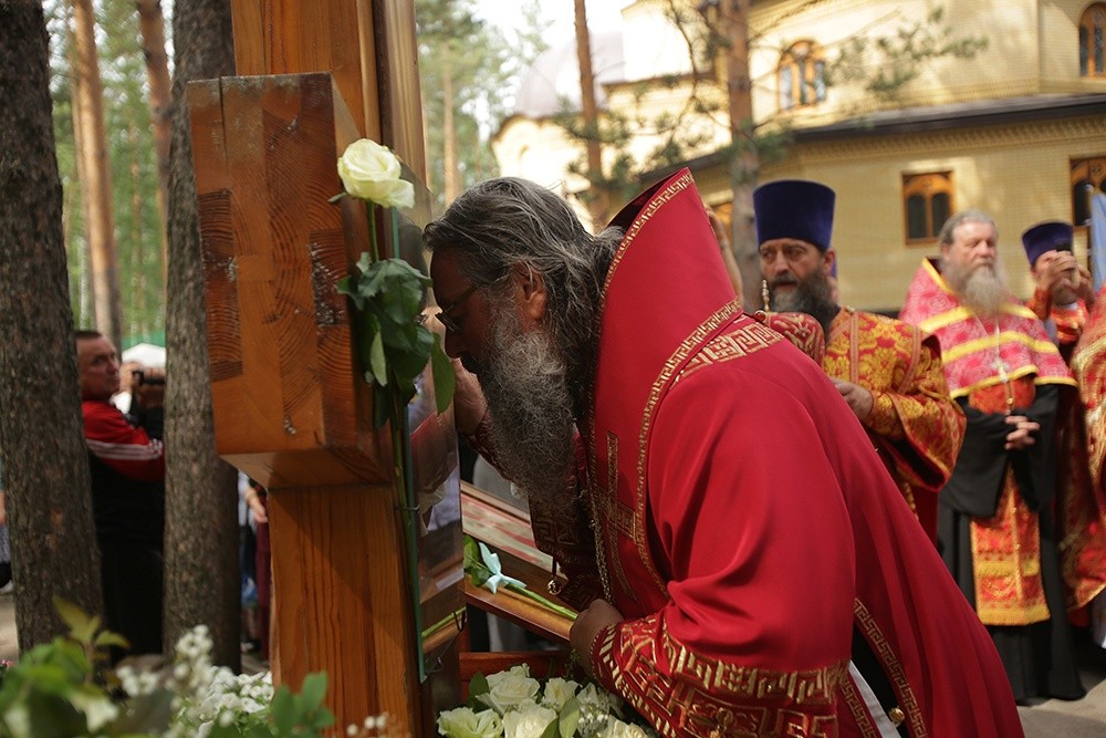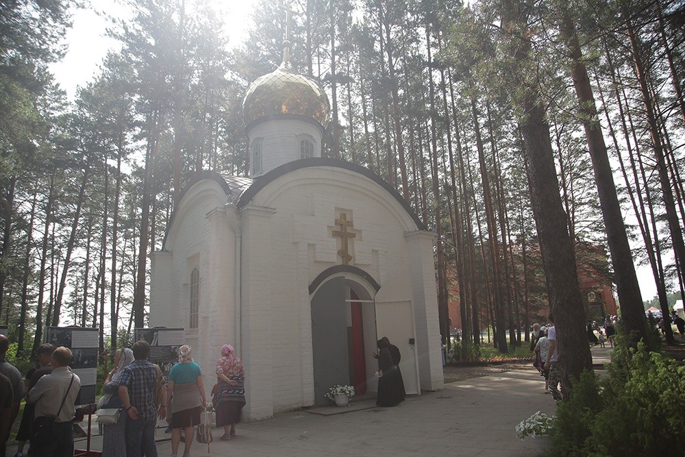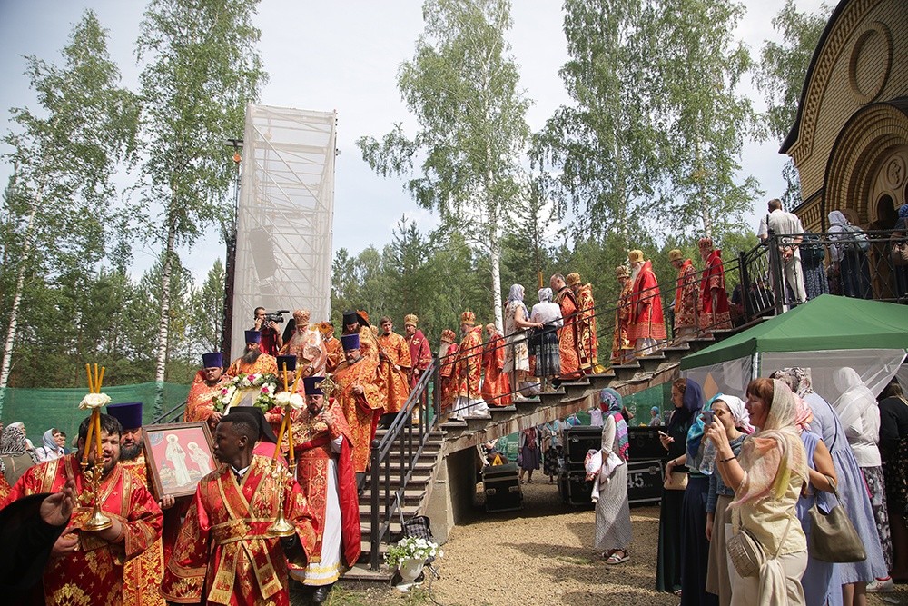 По завершении литургии состоялся крестный ход к шахте, куда в 1918 году, в ночь с 17 на 18 июля, живыми были сброшены алапаевские мученики: Великая княгиня Елисавета Феодоровна, ее келейница инокиня Варвара (Яковлева), Великий князь Сергей Михайлович, князья Дома Романовых Иоанн, Константин, Игорь Константиновичи, князь Владимир Палей и секретарь Федор Ремез.