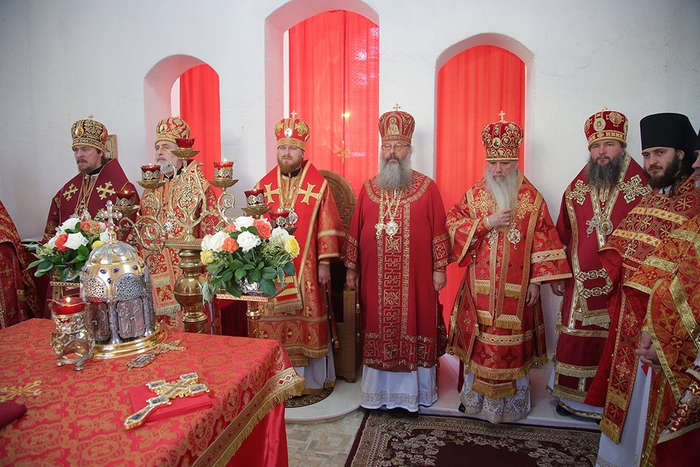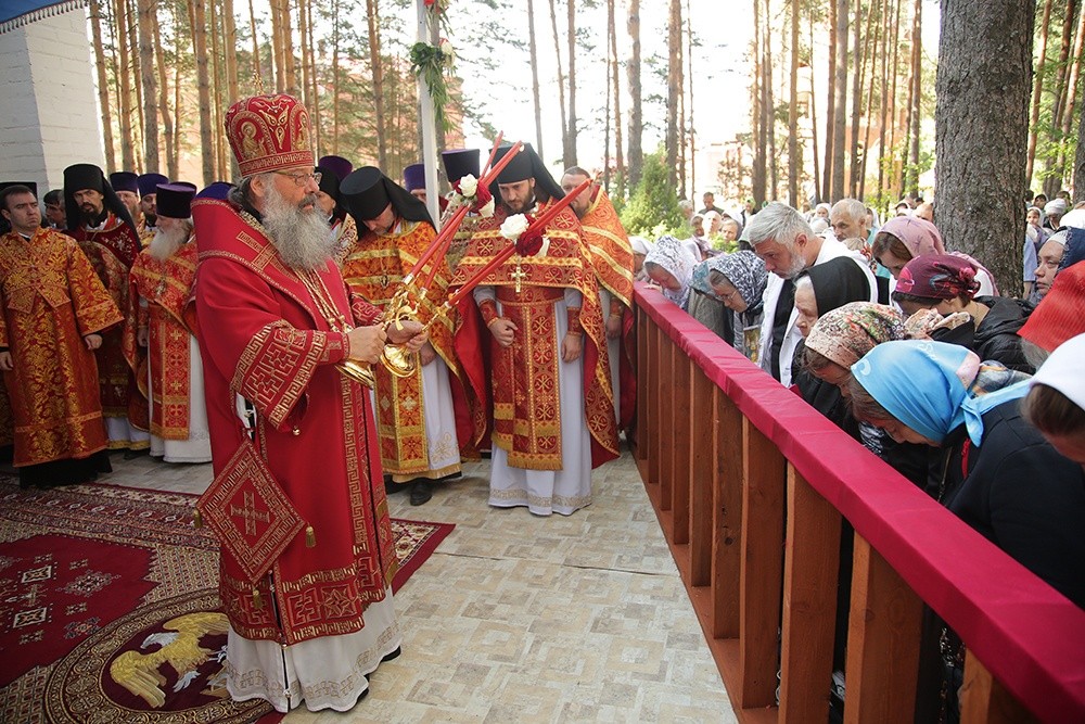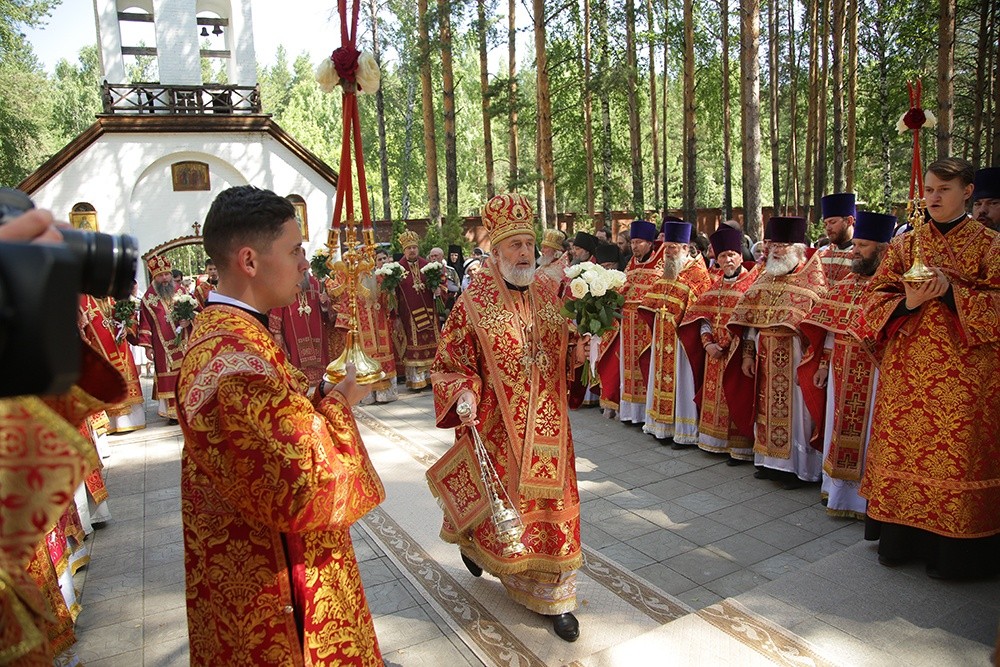 Его Высокопреосвященству сослужили епископ Каменский и Камышловский Мефодий, епископ Шадринский и Далматовский Владимир, епископ Нижнетагильский и Невьянский Евгений, епископ Серовский и Краснотурьинский Алексий, епископ Алапаевский и Ирбитский Леонид, старший духовник Московской епархии протоиерей Валериан Кречетов, настоятель обители игумен Моисей (Пилатс), сонм духовенства Екатеринбургской митрополии.
