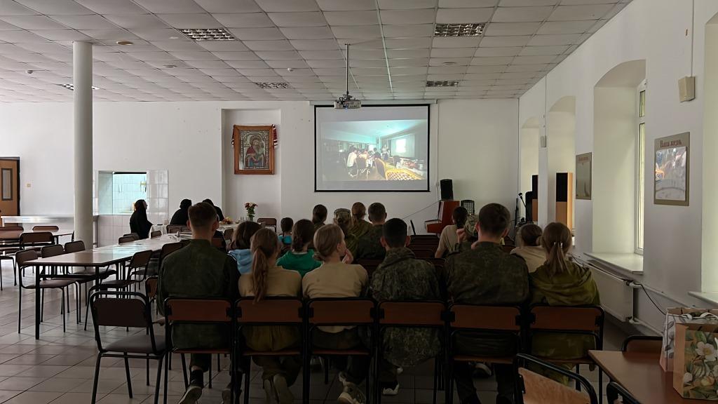 Кинопросмотр был организован в рамках проекта «Победы в Малом. Цикл мероприятий по патриотическому и духовно-нравственному воспитанию детей и молодежи», который реализуется с использованием гранта ОГОО «Российский фонд культуры» в рамках федерального проекта «Творческие люди» национального проекта «Культура» Свято-Никольским Черноостровским монастырем.