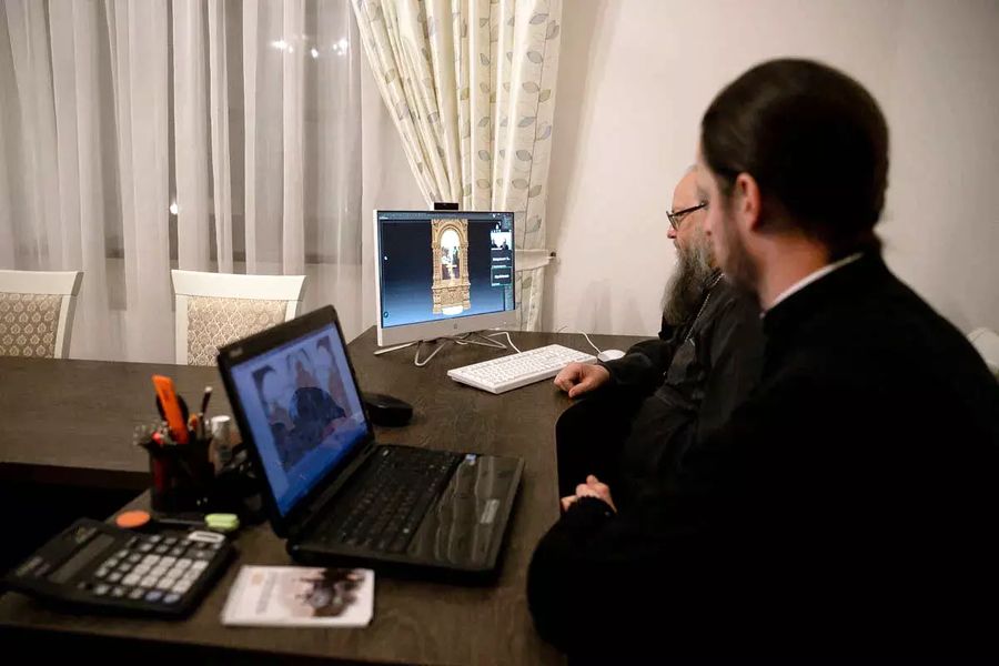 На совещании для обсуждения были представлены эскизы нового иконостаса, икон и напольного покрытия в алтарной части Успенского собора.