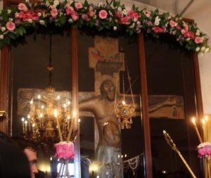Животворящий Крест – чудотворная святыня, явленная в XV веке пастухам в столпе света на болотцах. На месте его обретения основан монастырь во имя Сошествия Креста Господня в с. Антушкове, который и посетила паломническая группа. Сам Животворящий Крест Господень находится в храме Святителя Иоанна Златоуста подворья Свято-Никольского женского монастыря г. Переславля-Залесского в с. Годенове.
