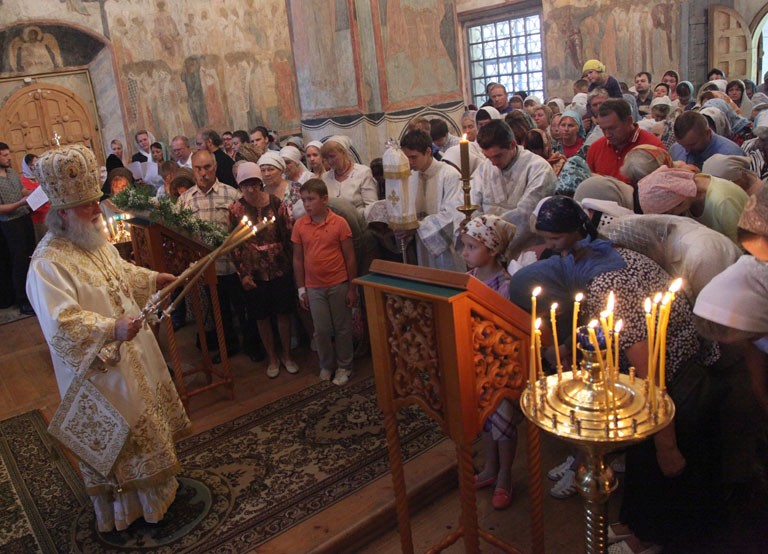 В день престольного праздника обители по окончании богослужения были совершены крестный ход и освящение плодов нового урожая.