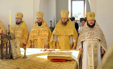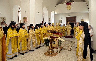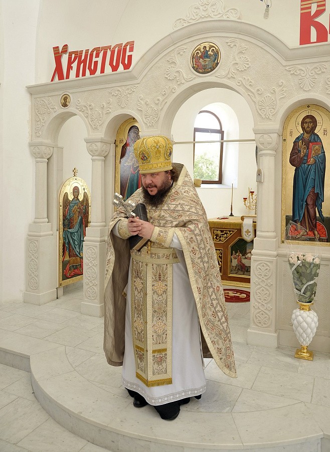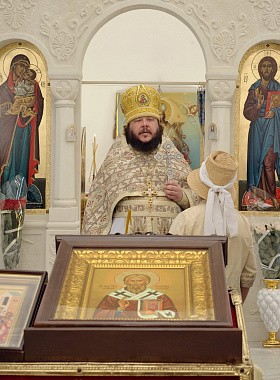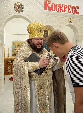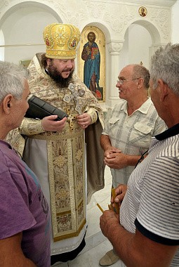 Возле храма византийской архитектуры прибывавших гостей и богомольцев встречал сам именинник, одаривая каждого благословением и приветственным словом.