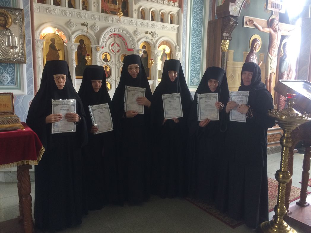 Вручены свидетельства об успешном окончании курсов базовой подготовки в области богословия для монашествующих женских монастырей Калужской митрополии выпускницам второго набора на базе Свято-Никольского Черноостровского женского монастыря г. Малоярославца.