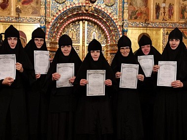Настоятельницы женских монастырей, скитов и подворий, торжественно вручили свидетельства об окончании курсов своим сестрам. Среди выпускниц данного набора семь сестер Казанского девичьего монастыря (Калуга), три – Свято-Успенского Лихвинского женского монастыря (с. Гремячево Перемышльского района), одна – женского монастыря в честь Калужской иконы Божией Матери, одна – архиерейского подворья при храме в честь Вознесения Господня, Вознесенского монастыря г. Козельска Козельской епархии. Семь выпускниц второго набора – сестры Свято-Никольского Черноостровского женского монастыря, проходящие послушания в Калужской духовной семинарии, в Издательском отделе Русской Православной Церкви и на подворьях обители, из которых две – настоятельницы подворий.