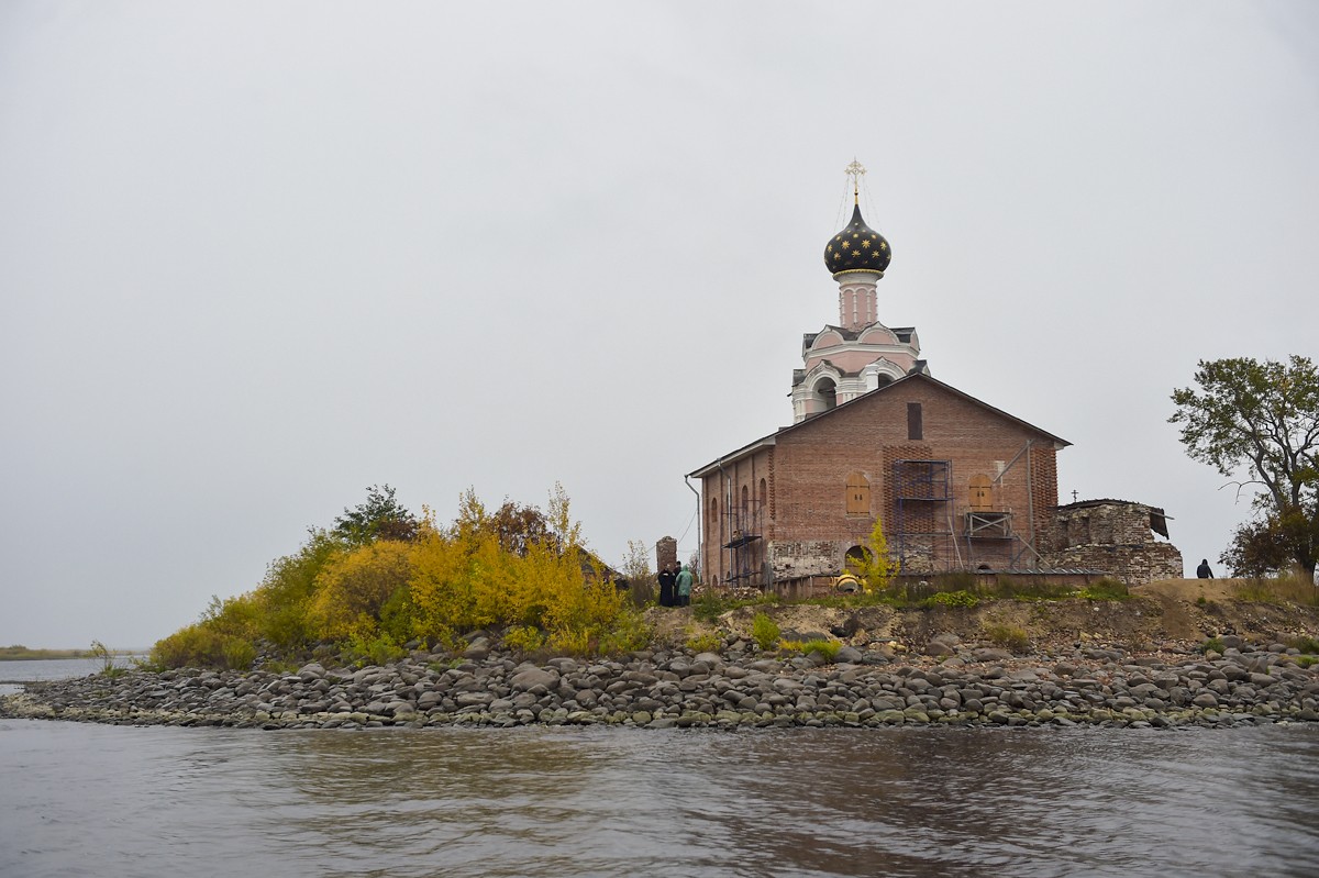 «Остальные здания на острове без использования и ухода естественным образом ветшали. Территория острова была в строительных завалах, вертикальная планировка отсутствовала, – говорится в описании объекта. – В 90-е годы прошлого века на острове начались реставрационные работы. Отреставрирована церковь Успения Пресвятой Богородицы, воссоздана трапезная палата, проведены подготовительные работы по воссозданию братского корпуса с погребами».