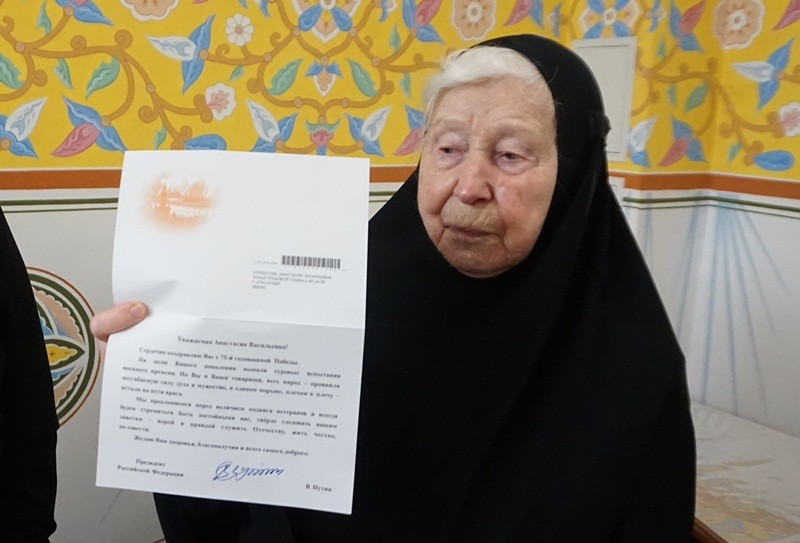 13 мая 2020 года, в праздник Преполовения Пятидесятницы, настоятельница монастыря игумения Неонилла (Кузьмина) за общей трапезой зачитала пришедшие в адрес монахини Серафимы поздравления с 75-летием Победы от Президента РФ В. В. Путина и губернатора Краснодарского края В. И. Кондратьева.