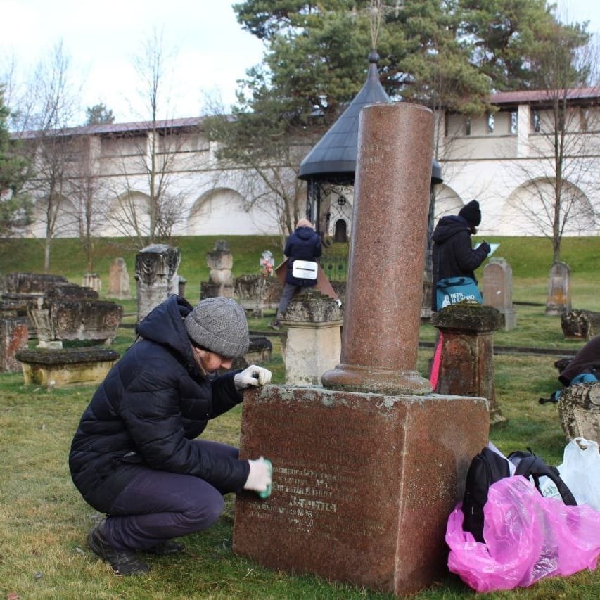 В рамках проведения мероприятий по изучению исторических некрополей XVIII–XX веков студенты познакомились с культурным и историческим наследием обители, приняли участие в поиске, фотофиксации и описании надмогильных памятников и эпитафий.