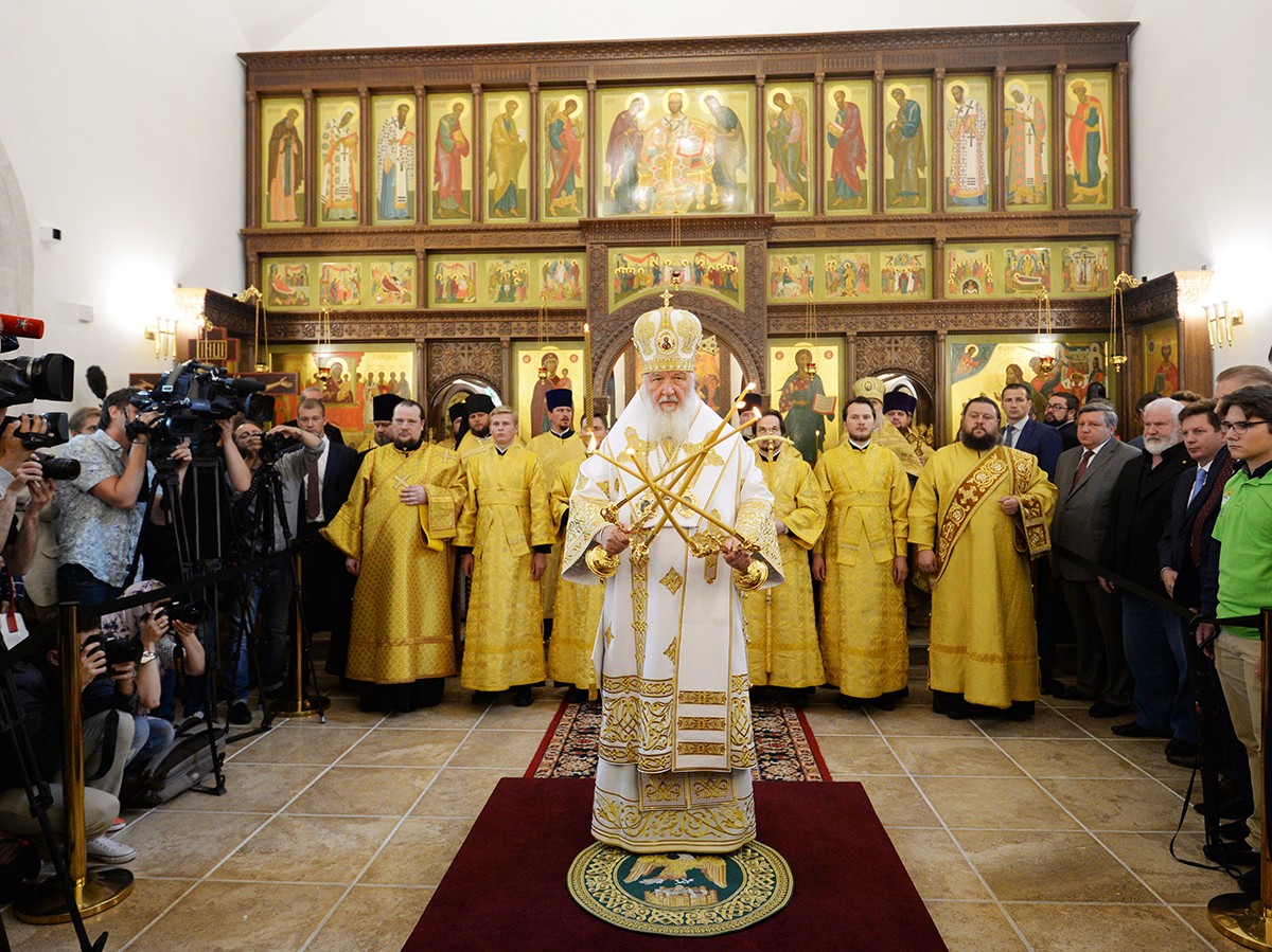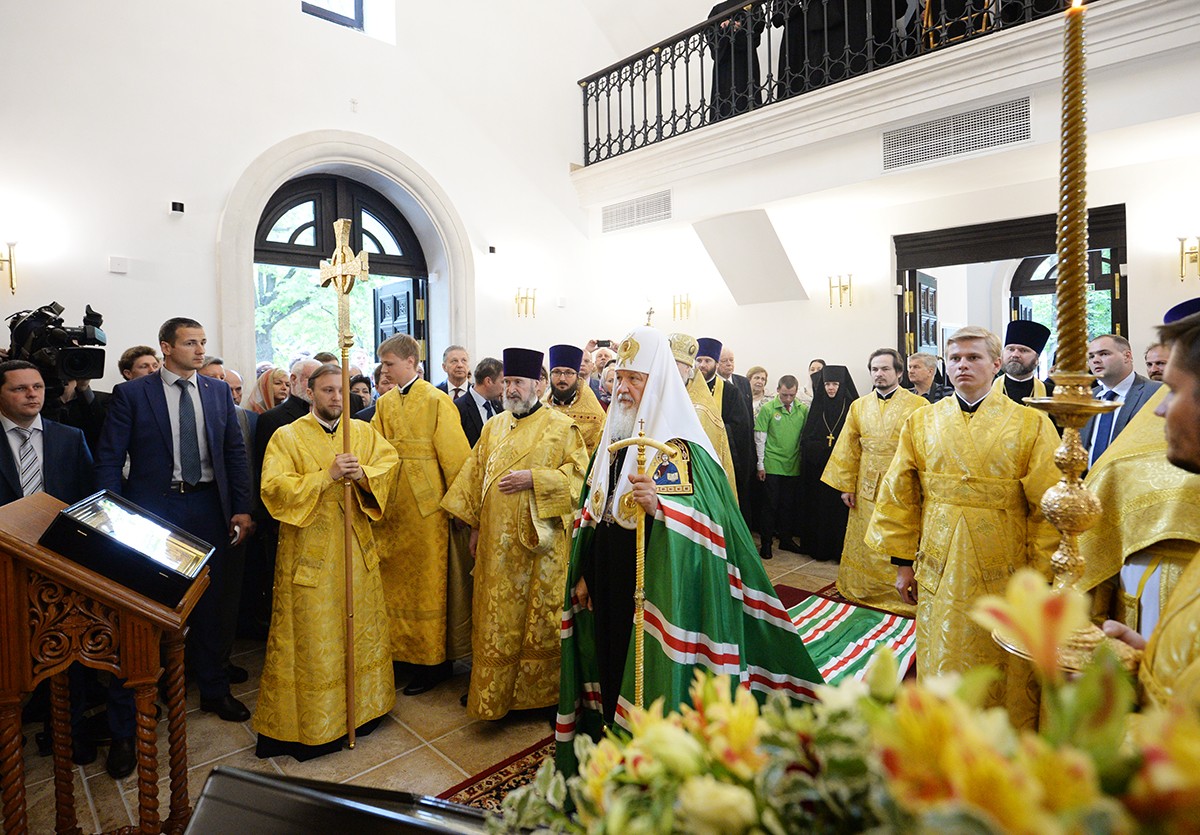 7 июля 2016 года, в праздник Рождества честного славного Пророка, Предтечи и Крестителя Господня Иоанна, по завершении чина великого освящения храма святого Усекновения главы Иоанна Предтечи у стен Московского Богородице-Смоленского Новодевичьего монастыря Святейший Патриарх Московский и всея Руси Кирилл совершил Божественную литургию в Смоленском соборе Новодевичьей обители.
