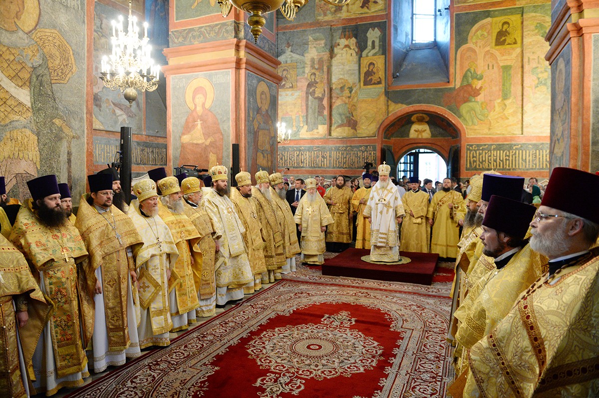 Его Святейшеству сослужили: митрополит Крутицкий и Коломенский Ювеналий, Патриарший наместник Московской епархии; митрополит Астраханский и Камызякский Иона; митрополит Екатеринбургский и Верхотурский Кирилл; епископ Илиан (Востряков); епископ Видновский Тихон; епископ Серпуховской Роман; епископ Солнечногорский Сергий, руководитель Административного секретариата Московской Патриархии; епископ Балашихинский Николай; епископ Зарайский Константин; протоиерей Владимир Диваков, секретарь Патриарха Московского и всея Руси по г. Москве; архимандрит Никон (Матюшков), благочинный церквей Шатурского округа; духовенство Москвы и Московской епархии.