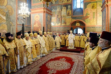После сугубой ектении Предстоятель Русской Православной Церкви вознес молитву о мире на Украине.