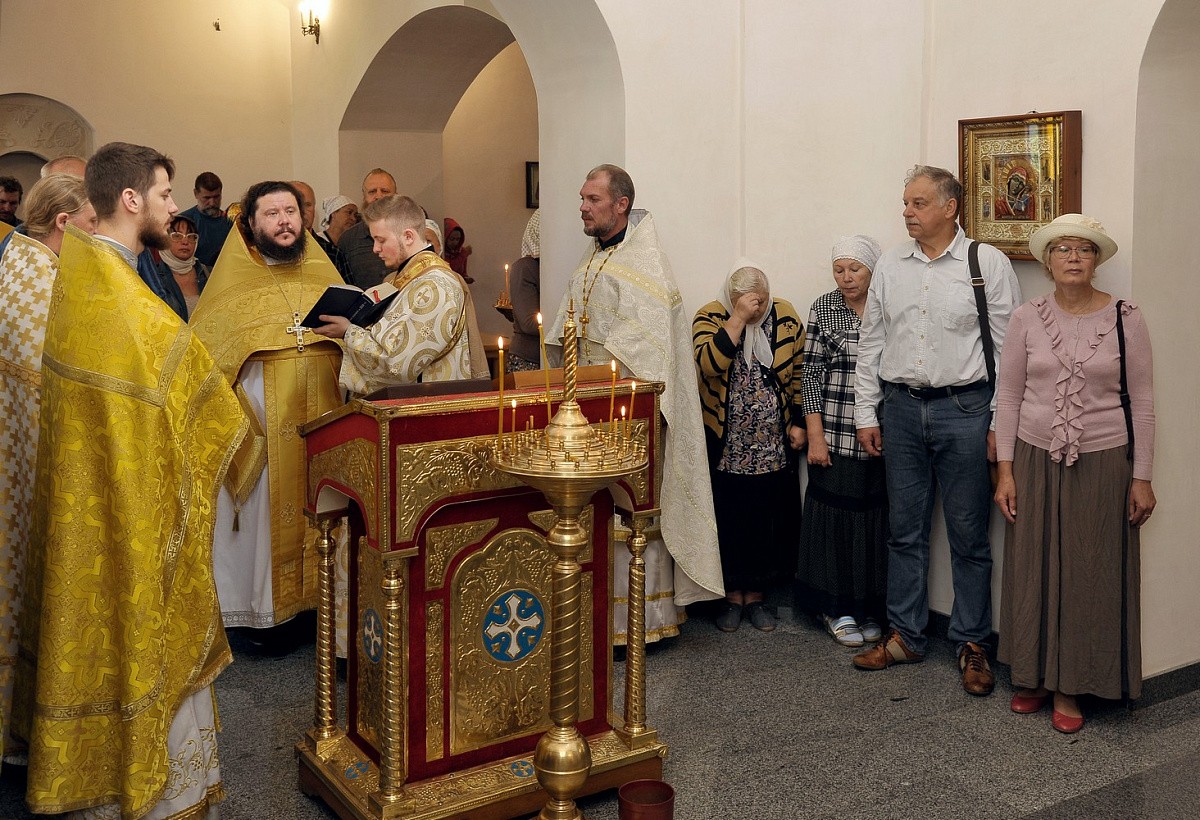 16 сентября 2018 года, в неделю 16-ю по Пятидесятнице, благочинный монастырей Симферопольской и Крымской епархии и наместник Свято-Климентовского Инкерманского пещерного мужского монастыря архимандрит Каллиник (Чернышев) совершил воскресную Божественную литургию в Свято-Троицком храме обители.