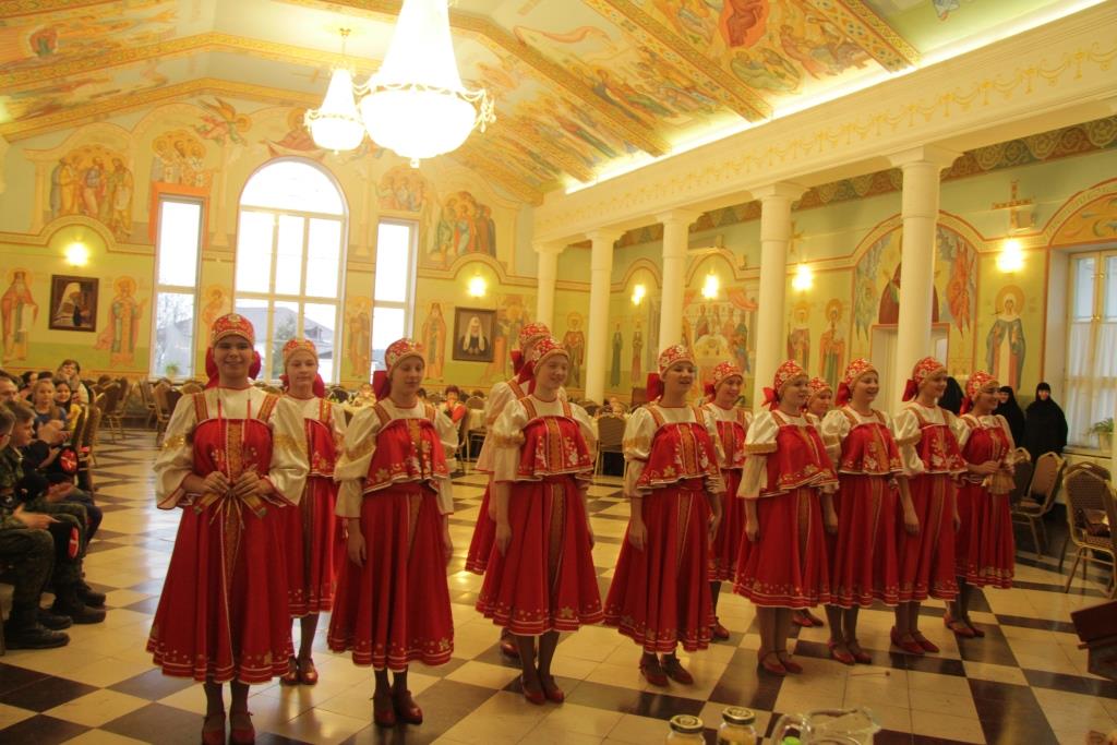 По завершении церемонии награждения настоятельница Свято-Никольского Черноостровского женского монастыря игумения Николая пригласила всех перейти в большую трапезную обители на праздничный обед и концерт-подарок от воспитанниц детского православного пансиона «Отрада».
