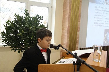 С мультимедийным и мультиформатным докладом «Один день из жизни космонавта» выступила ученица 11 класса Православной гимназии при Свято-Никольском Черноостровском женском монастыре Ксения Васяева. Презентация доклада с фотографиями и видеофрагментами, рассказывавшими о ежедневном быте и научной работе на орбите, позволила юным слушателям в яркой и доступной форме в подробностях узнать о работе космонавтов. По завершении выступления прозвучали вопросы к докладчику. Ксения Васяева ответила на вопросы о том, сложно ли было подготовить доклад, рассказала об источниках информации для него – экспозиции музея К.Э. Циолковского в г. Калуге и открытых данных интернета – и переадресовала некоторые из вопросов присутствовавшим на конференции космонавтам.