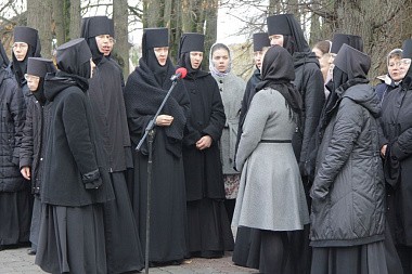 После отдания почестей в сквере 1812 года крестный ход двинулся к монументу славы героям Отечественной войны 1812 года и памятнику полковому священнику Василию Васильковскому, куда также были возложены цветы.