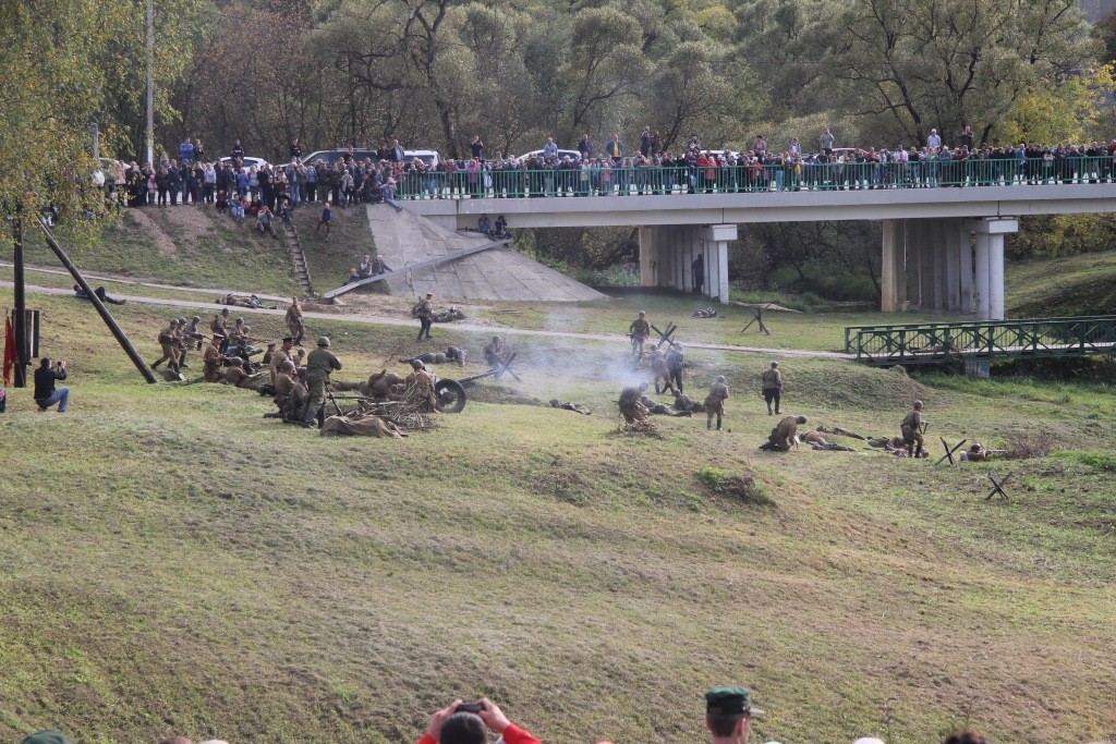 В реконструкции боев на Ильинских рубежах были задействованы два самолета, мотоциклы, артиллерия, минометы и танки с пиротехникой, чтобы зрители смогли хотя бы в какой-то степени ощутить себя на месте подольских курсантов, «понюхав пороху» в «боевой обстановке».