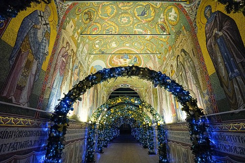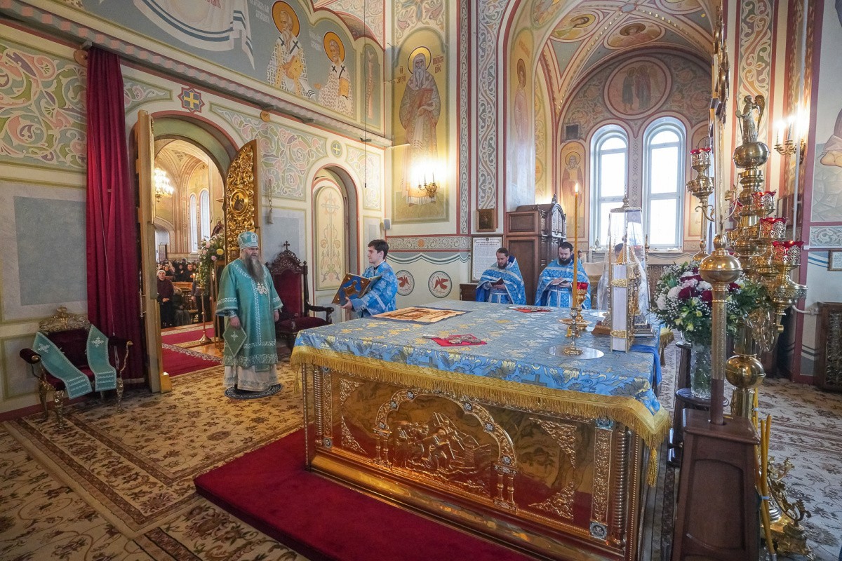 Богослужение состоялось в Преображенском соборе монастыря, где временно пребывает рака с мощами преподобного Серафима Саровского.
