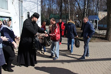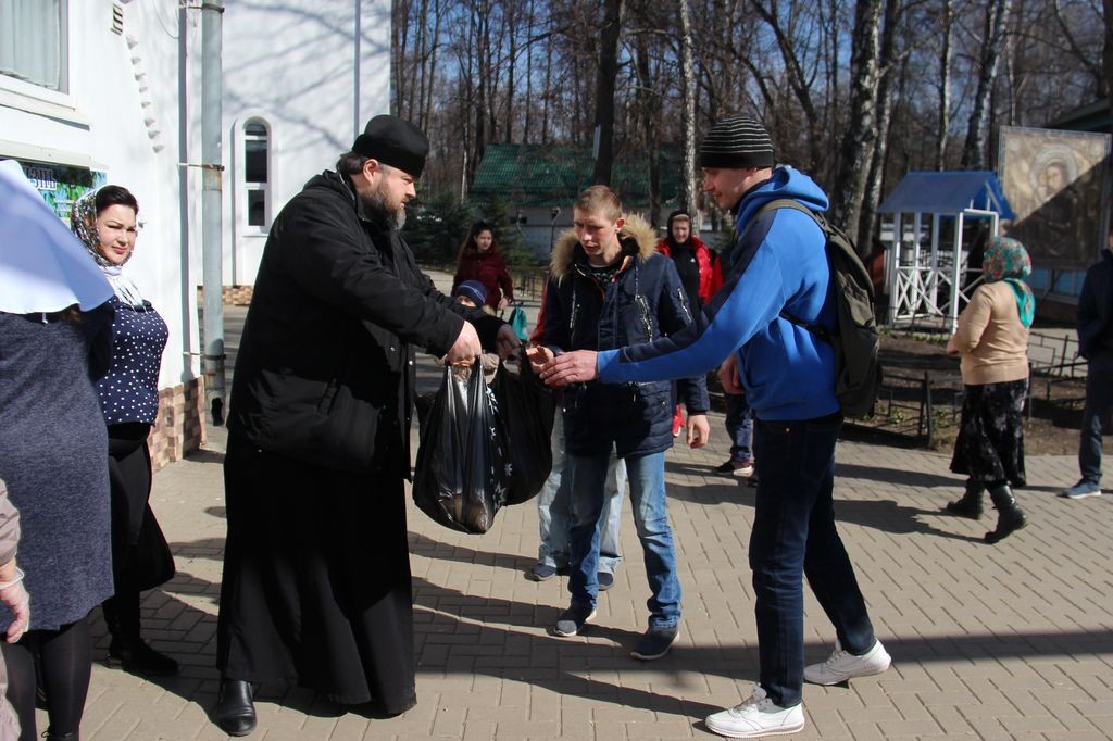 Собранные продуктовые наборы были вручены келарем обители иеродиаконом Нектарием (Монаховым) пожилым и неимущим людям, а также были доставлены Службой православных добровольцев маломобильным жителям города Новомосковска.