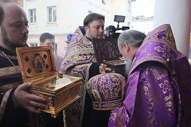 В период пребывания святынь богослужения в храме будут совершаться ежедневно: утром с 09:00, вечером с 17:00. По окончании утреннего богослужения и перед началом вечернего богослужения перед святынями будет совершаться молебное пение. Также по будним дням с 13:00 будет служиться молебен с акафистом.