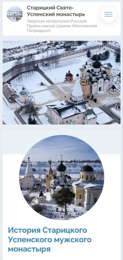 Разработка сайта монастыря – проект Творческого объединения «Парсуна», в портфолио которого в том числе обновленный официальный сайт Русской Православной Церкви. Программисты и дизайнеры разработали удобный и информативный сайт для верующих людей и всех тех, кто интересуется историей и современной жизнью древней Старицкой обители.